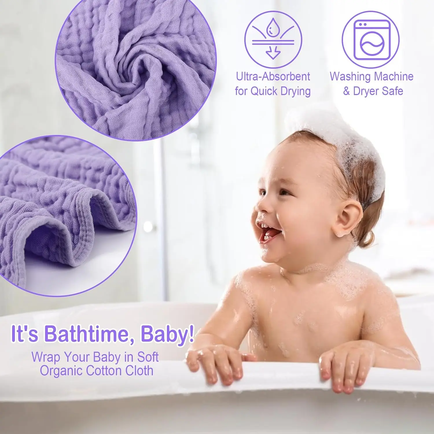 Discover the perfect addition to your baby's essentials with our premium hooded muslin cotton towels. Designed for comfort and convenience, these towels are ideal for newborns and infants up to toddler age. Key Features: - **Superior Material**: Made from 100% high-quality muslin cotton, these towels are exceptionally soft, gentle on delicate baby skin, and highly absorbent to keep your little one dry after bath time. - **Practical Design**: Each towel features a built-in hood that helps keep your baby's head warm and cozy, making it easy to wrap them up quickly. The generous 32x32 inch size provides ample coverage for swaddling or drying. - **Versatile Use**: Perfect for bath time, swimming lessons, beach outings, or as a lightweight blanket during naps. The breathable fabric ensures comfort in various settings without causing overheating. - **Easy Care**: Machine washable and durable, these towels maintain their softness and color vibrancy through multiple washes. They dry quickly, making them ready for daily use. - **Safety First**: Free from harmful chemicals like BPA and phthalates, ensuring a safe environment for your baby. The materials are hypoallergenic to minimize irritation risks. - **Stylish Colors**: Available in charming pink and purple shades that appeal to both boys and girls, adding a touch of cuteness to your nursery or travel bag. Why Choose Our Baby Towels? Our towels combine functionality with style, offering parents a reliable solution for everyday needs. The muslin cotton fabric is known for its breathability and durability, providing long-lasting performance even with frequent use. Whether you're at home or on the go, these towels make caring for your baby simpler and more enjoyable. Customer Benefits: - Saves time with quick-drying properties. - Enhances bonding during bath routines with soft touch. - Reduces mess by effectively absorbing moisture. - Adds versatility to your baby gear collection. Ideal For: New parents looking for practical gifts or essentials that grow with their child from infancy through early years.