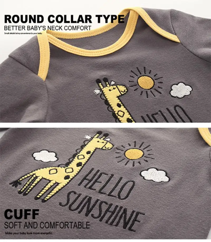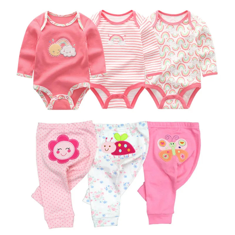 6/8PCS Cotton Baby Boy Clothes Sets Print Bodysuits+Pants Newborn Baby Girl Clothes Long Sleeve Spring Autumn