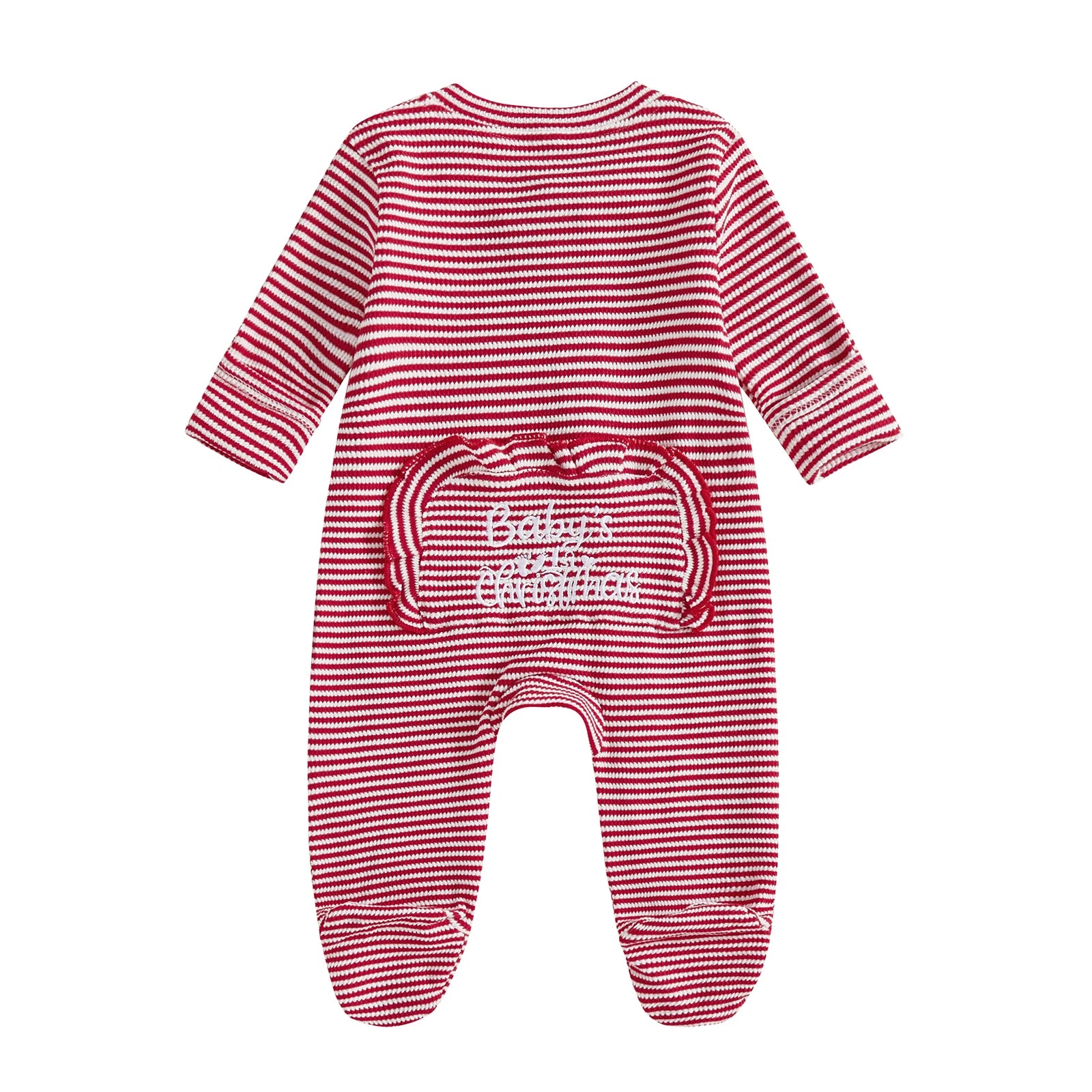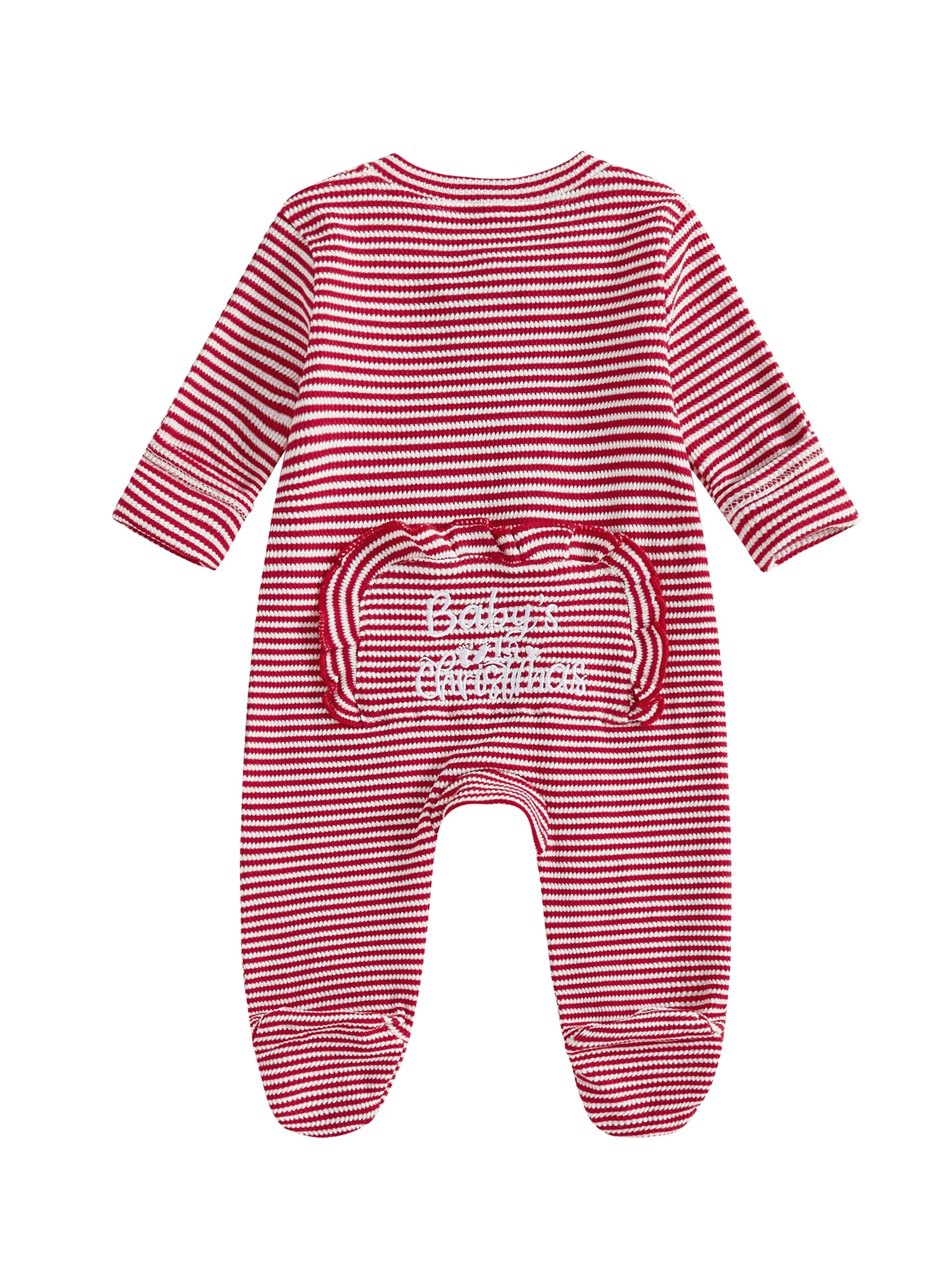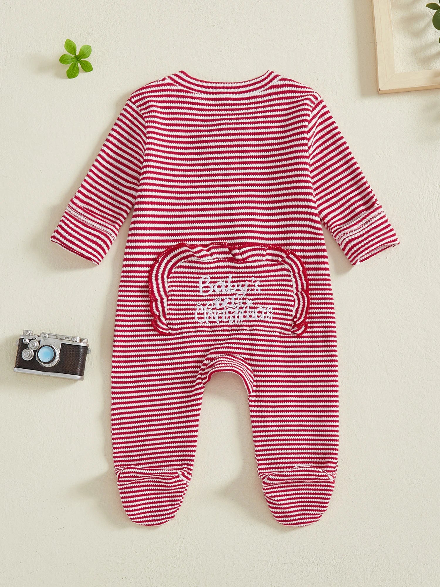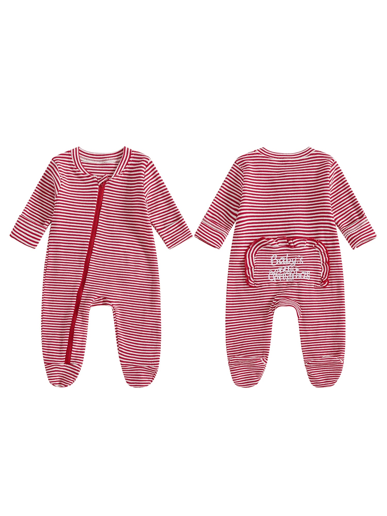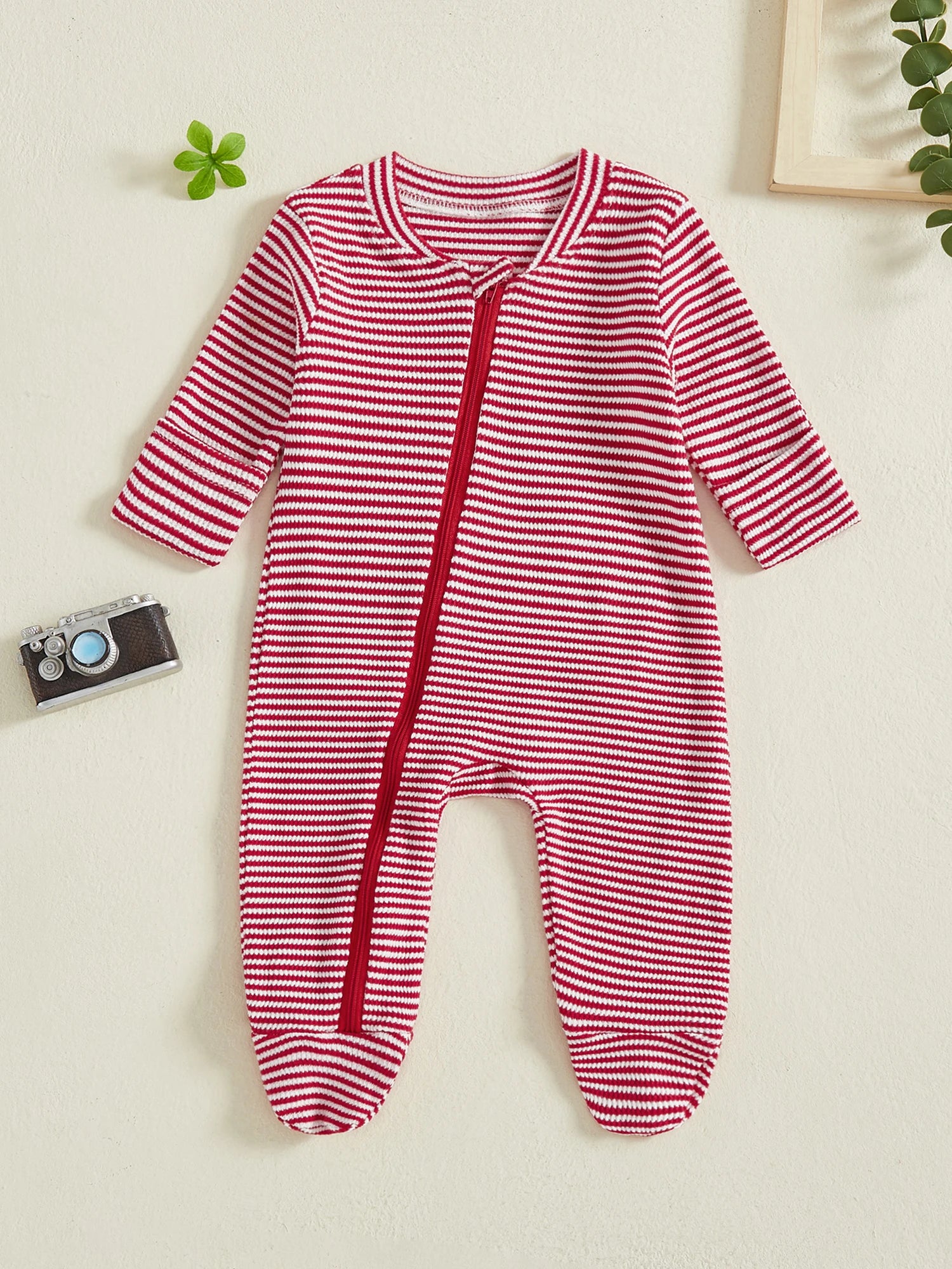 Infant Unisex Bodysuit Round Neck Long Sleeve Striped Footed Pajama with Full-Length Zipper Closure