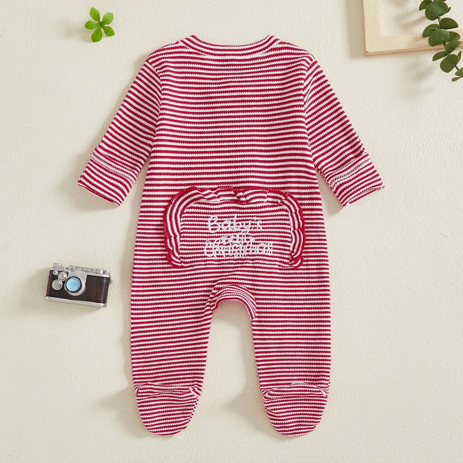 Newborn Baby Boy Girl Romper Crew Neck Long Sleeve Full Length Zipper Up Striped Footed Jumpsuit
